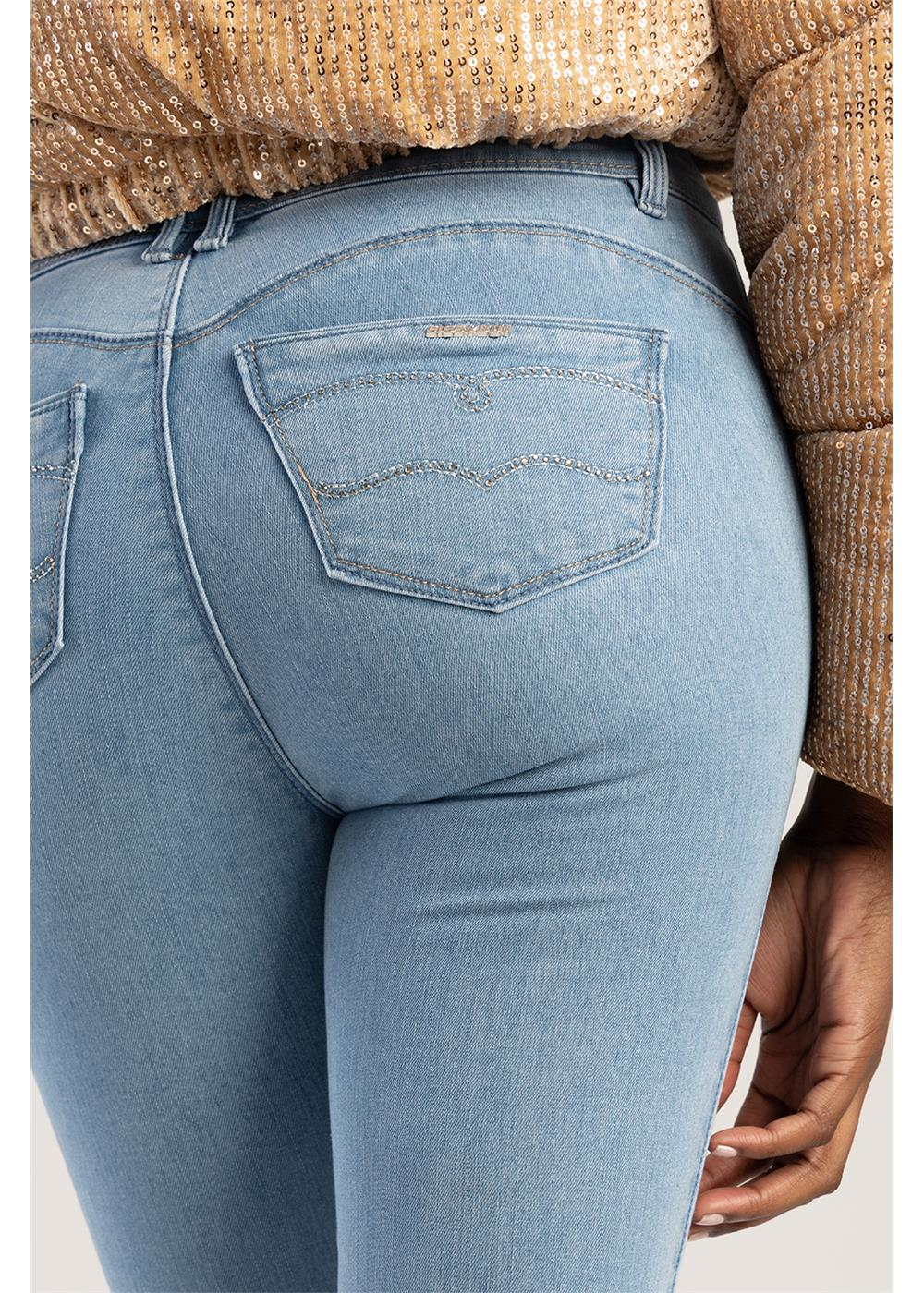 The curvy skinny sits tight on the waist with no gaping, skinny thigh and leg opening. Crafted from soft, stretchy denim for all-day comfort, these jeans feature a flattering mid-rise waist for a playful hint.