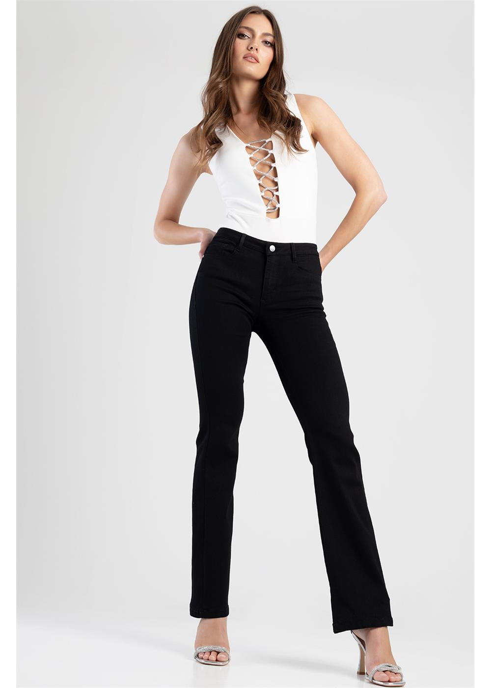 • Mid-rise waist