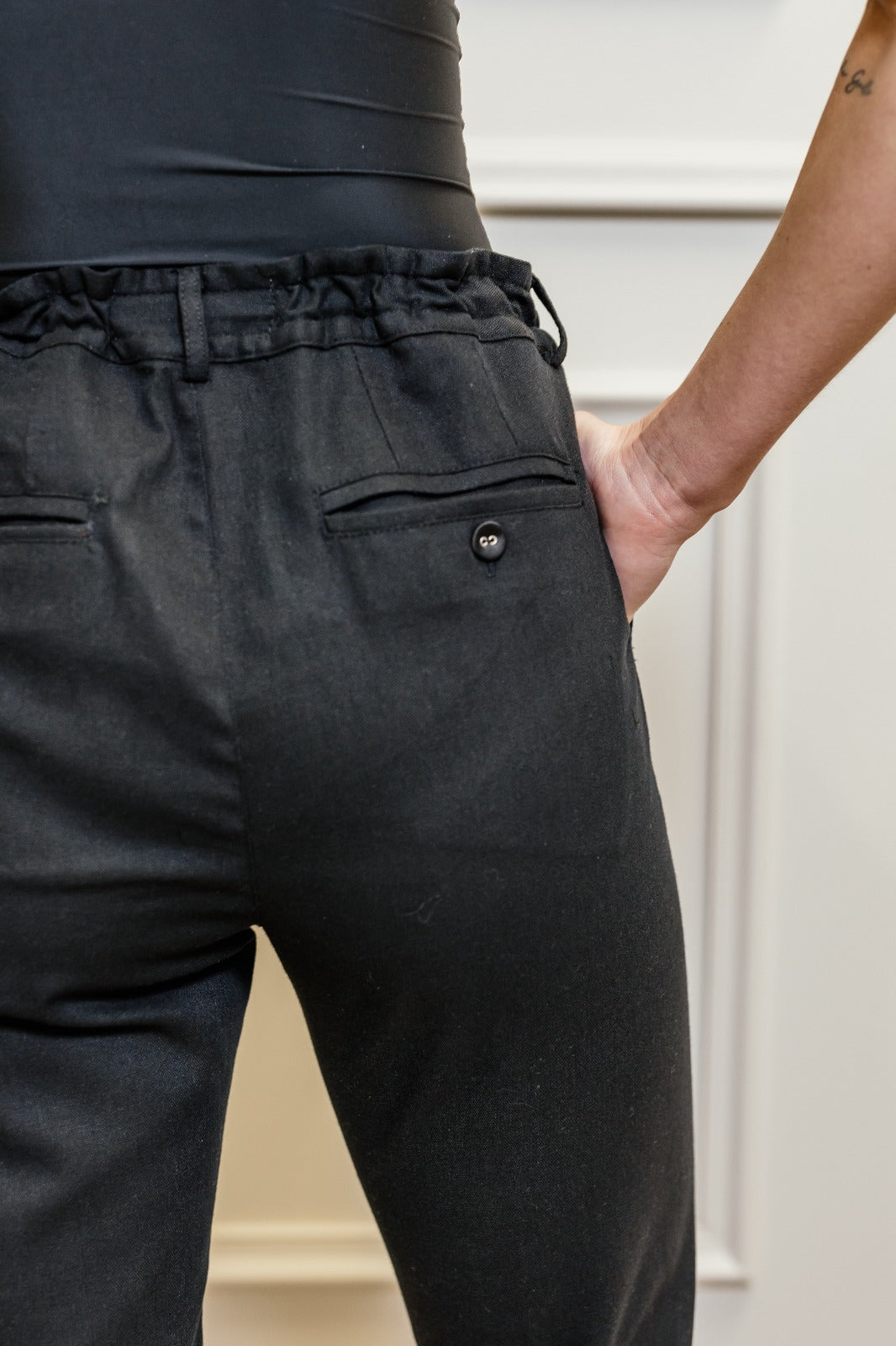 Redefine casual elegance with the Stephanie Jogger, a versatile staple designed for laid-back luxury. Crafted from a soft, breathable fabric, these black pants combine everyday comfort with boutique-level sophistication.