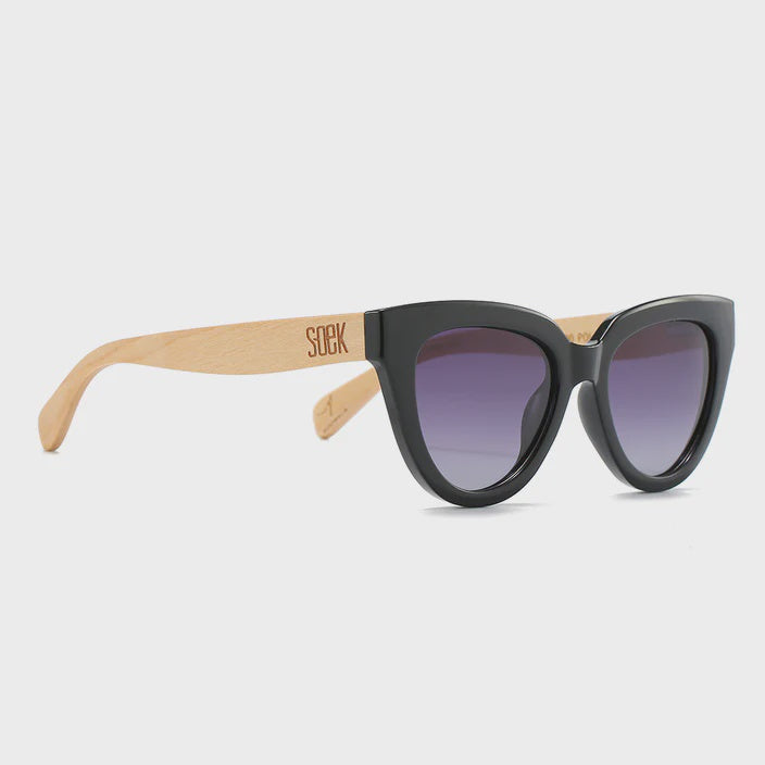 Timeless and chic, these eco-friendly cat-eye sunglasses in a classic black finish are the epitome of understated elegance. Paired with sustainable walnut wood arms, they offer a sophisticated, natural touch that complements any style. Perfect for those who want a blend of glamour, versatility, and eco-conscious design.