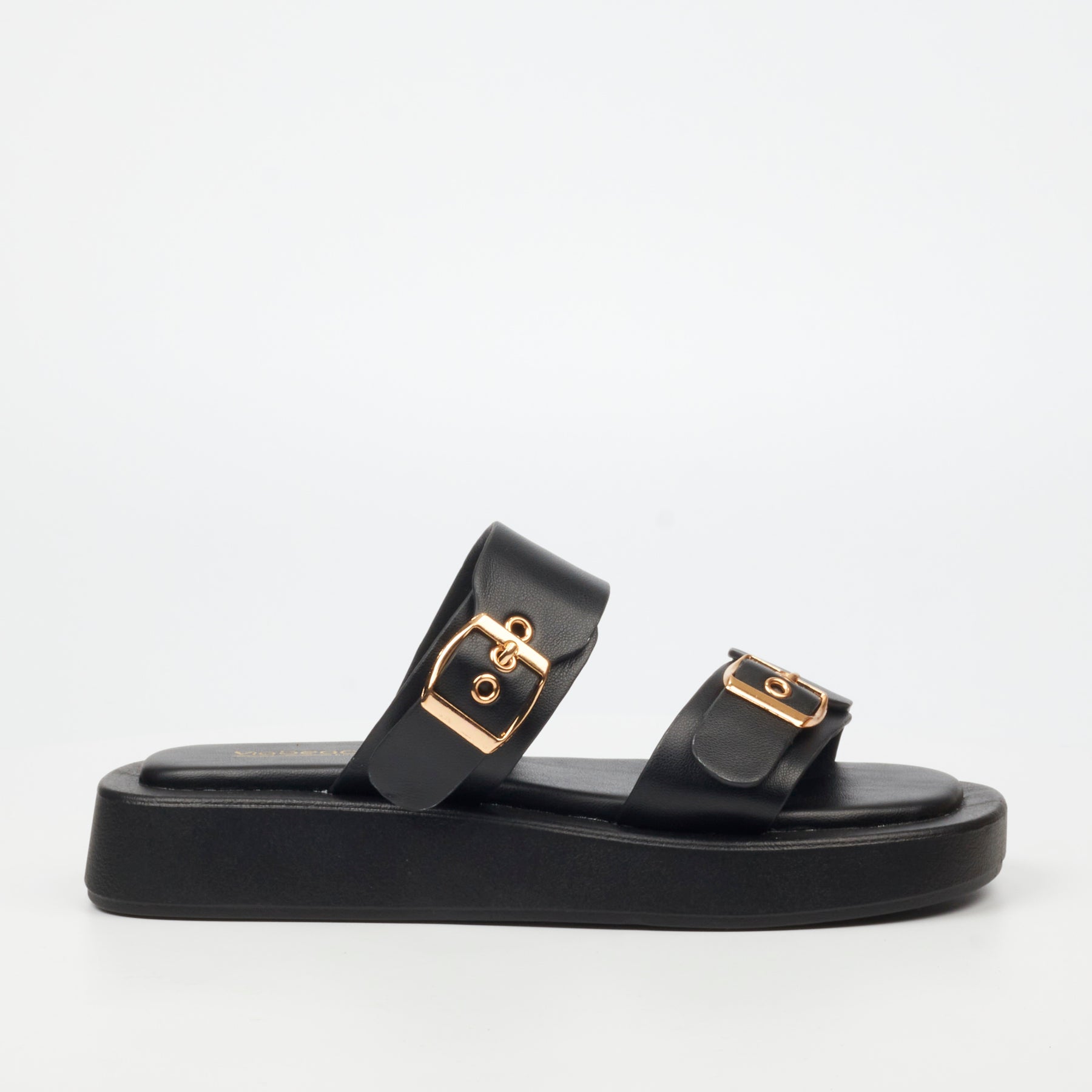 Make a bold statement with this sleek slip-on shoe, designed with a contemporary square toe for a modern edge. Featuring double metallic buckles across the vamp, it blends functionality with standout style. The slip-on design ensures effortless wear, while the polished details make it a versatile piece that elevates both casual and smart-casual looks.