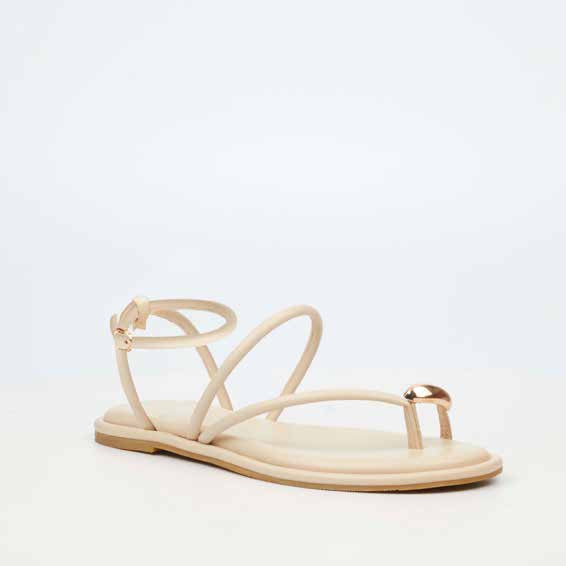 This strappy sandal exudes understated elegance with its criss-cross ankle strap design, adding both style and secure support. The slender straps create a refined, feminine look, while the open silhouette keeps it light and breezy — perfect for warm-weather wear. Designed for comfort and versatility, this sandal transitions effortlessly from day to evening.
