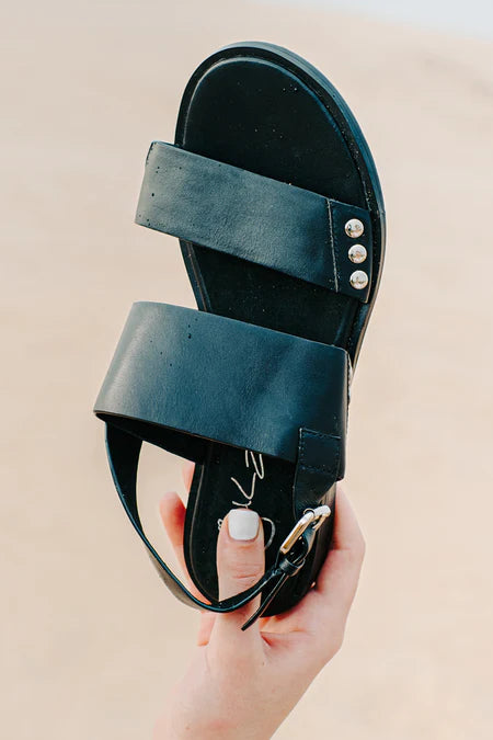 The Poppy sandal features a comfortable round toe design and an adjustable buckle for a personalized fit. Its distinctive side stud detail on the first strap adds a subtle yet stylish edge, making it a versatile choice for both casual and refined looks. Crafted to combine comfort with contemporary style, this sandal is an expert pick for those seeking both function and fashion.