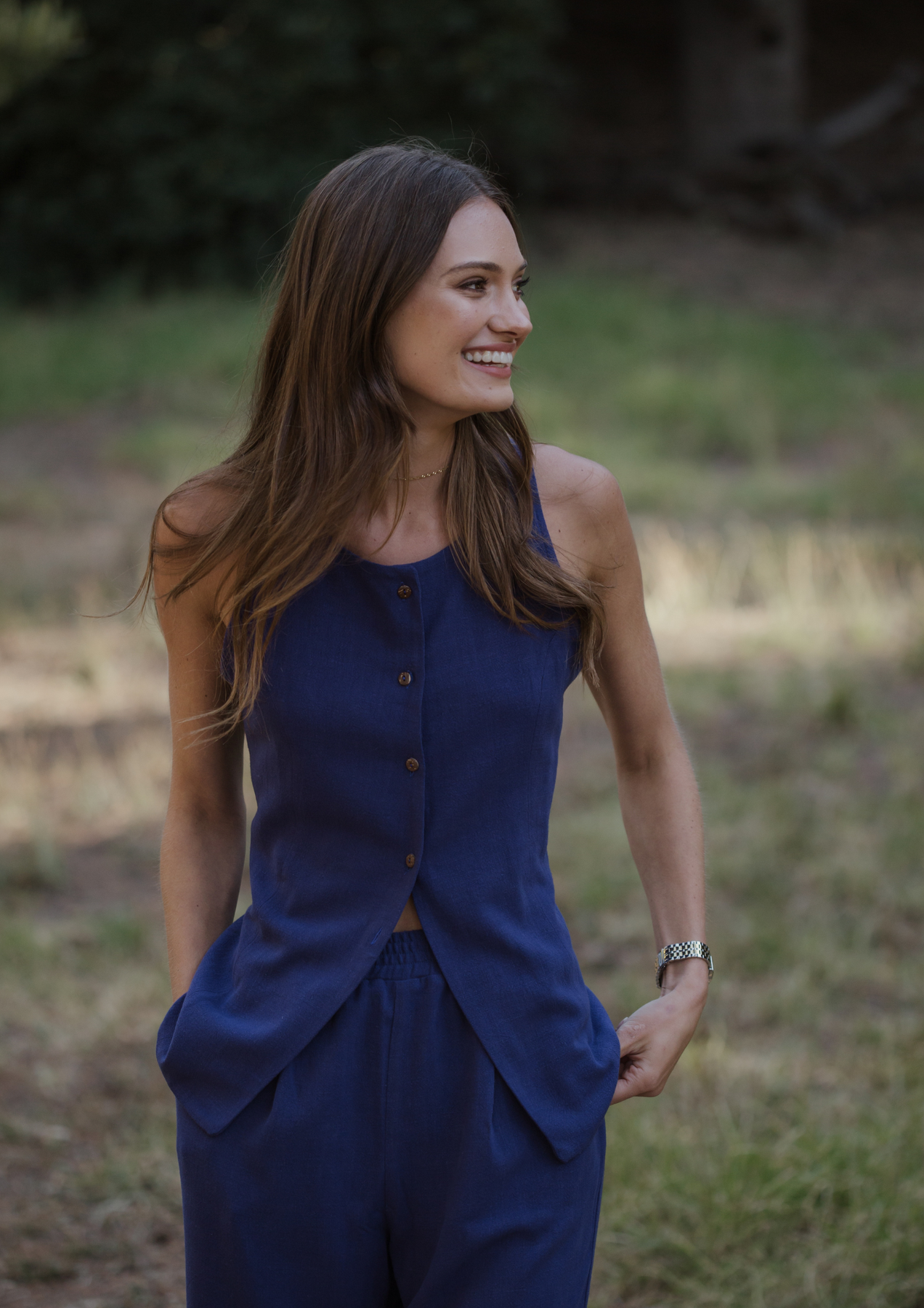 Effortlessly refined and endlessly versatile, the Placy Linen Waistcoat is a modern classic reimagined in lightweight, breathable linen. With its clean tailoring and softly structured form, this piece adds a polished layer to any warm-weather wardrobe.