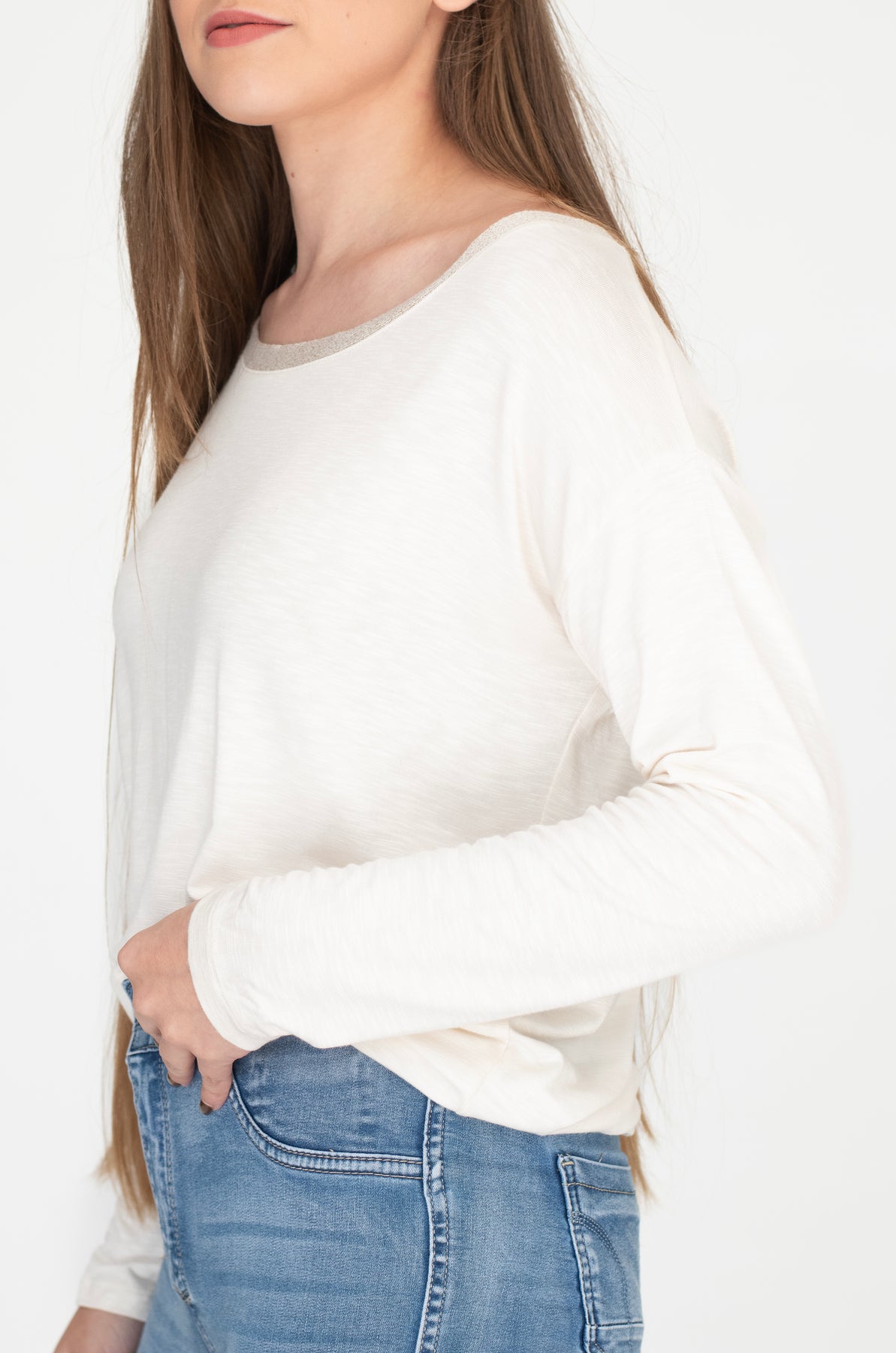Elevate your everyday style with the effortlessly chic Accalia Top. The eye-catching silver and gold detailing along the neckline adds just the right amount of shimmer, making it perfect for both daytime glam and evening outings.