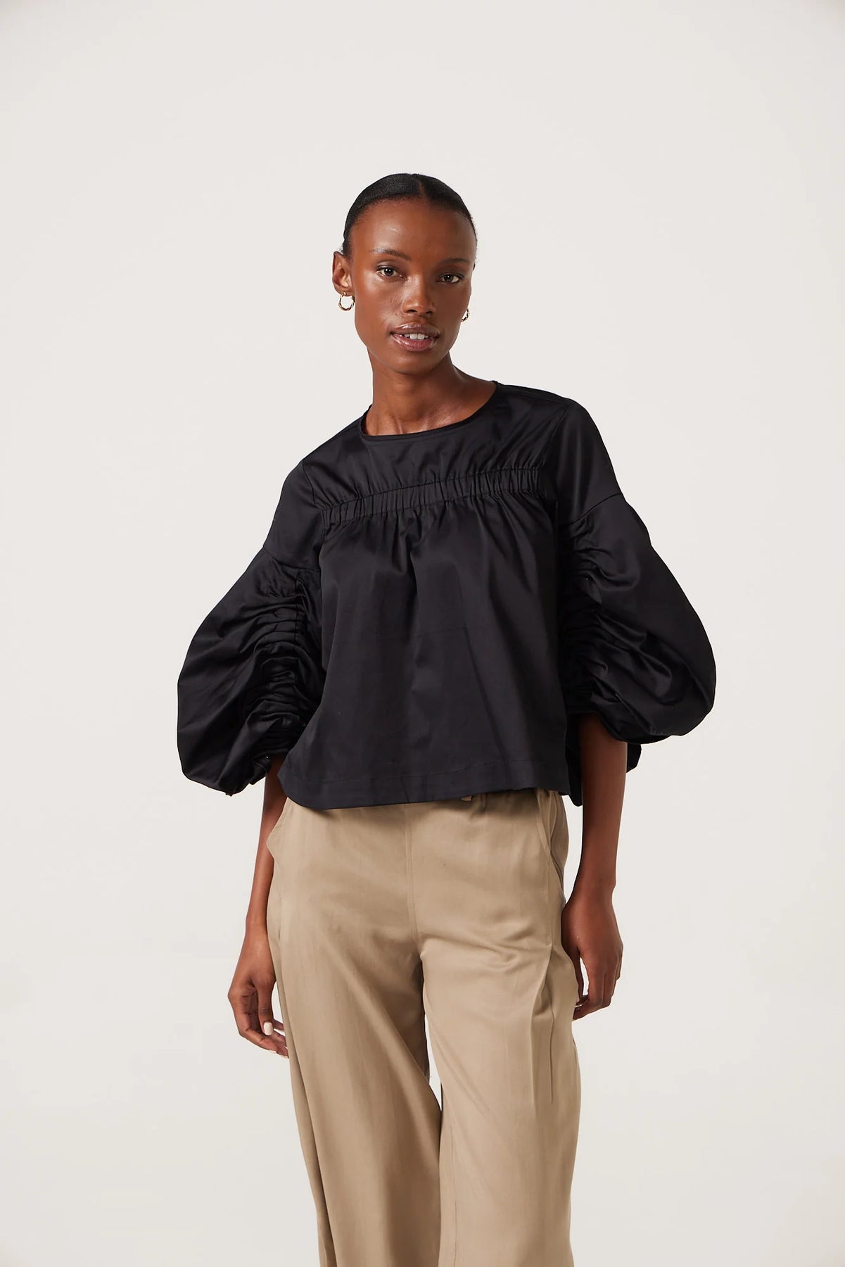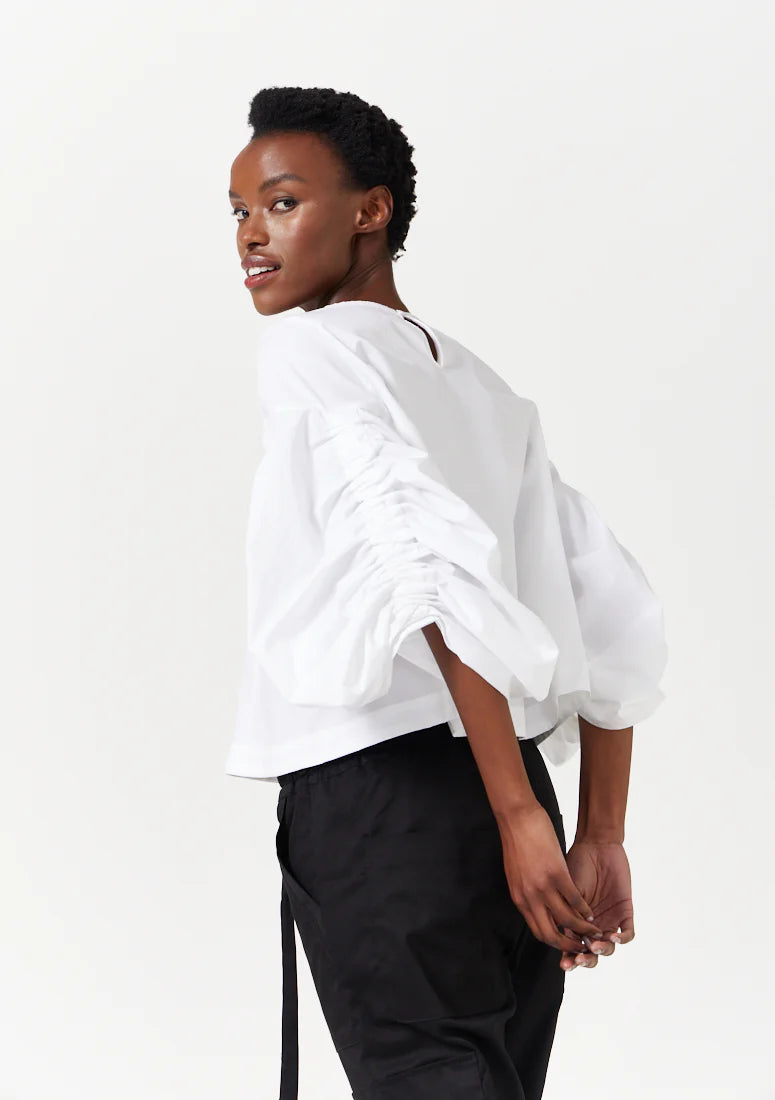 A Smudj signature - the Laurie Top is sure to make a bold statement, day or night. Reimagined in a Luxe cotton sateen fabrication. Elevate any look instantly.
