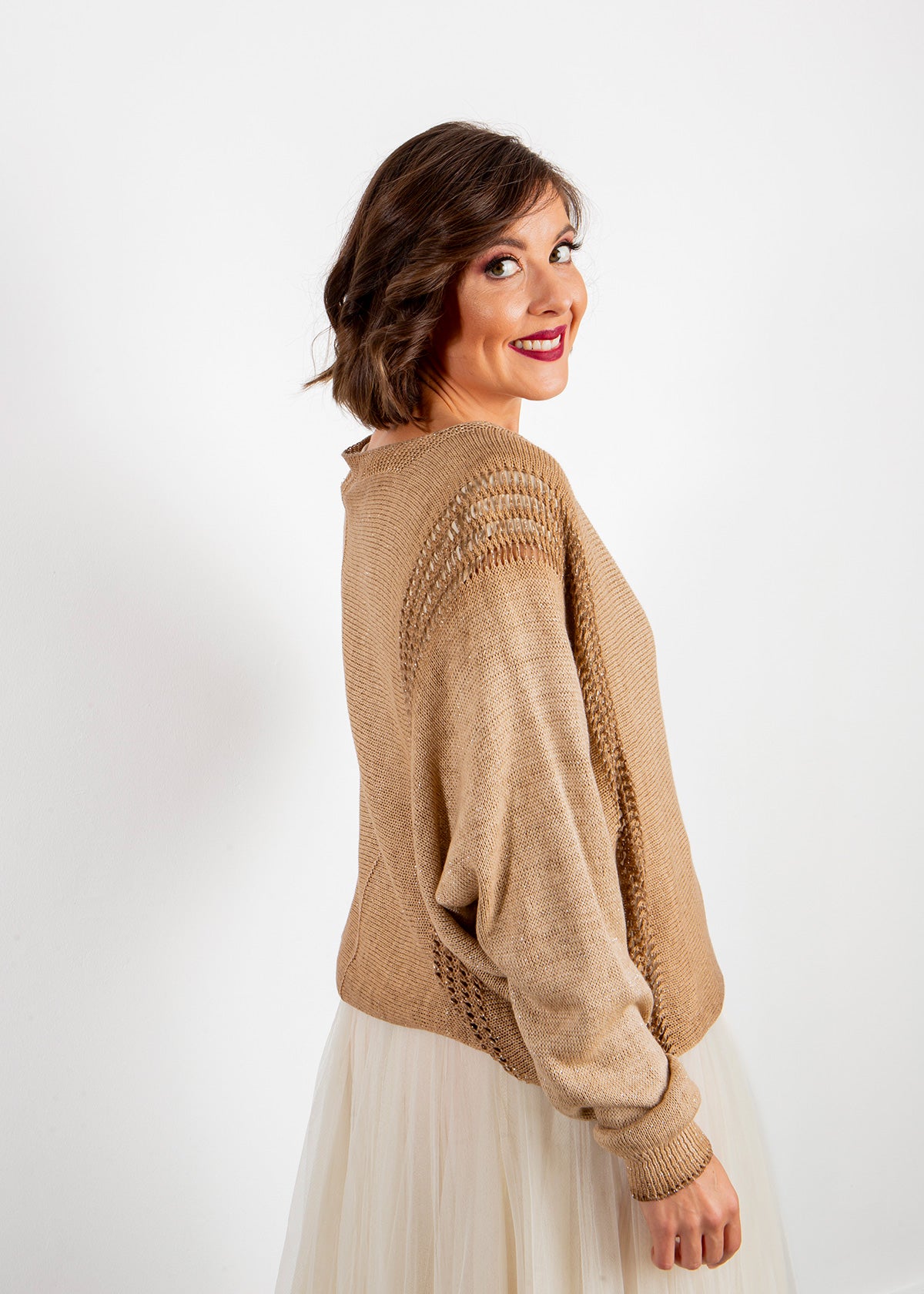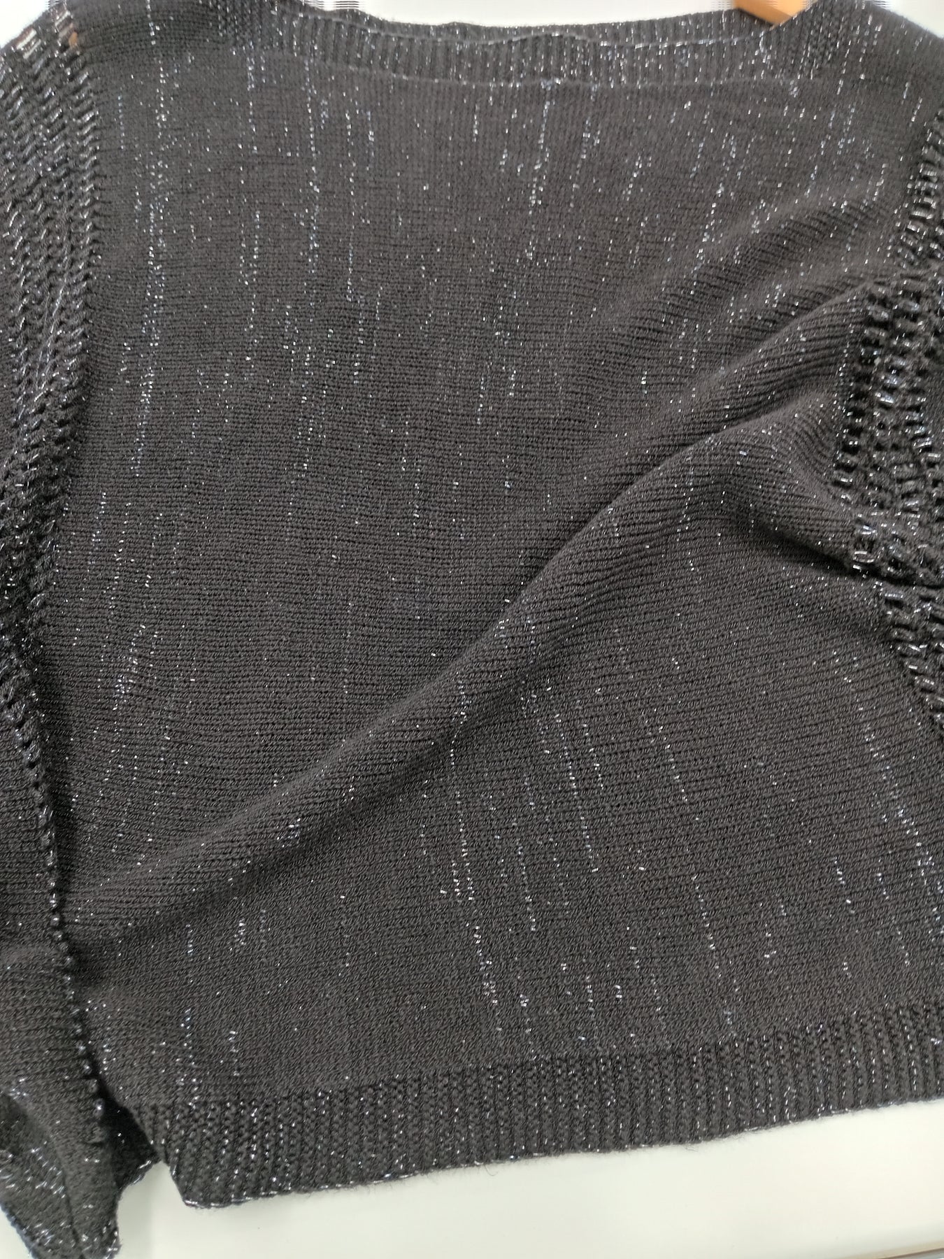 This trendy Italian top boasts a striking shiny detail and a rounded neckline. The Eshima top features full-length sleeves and is made of high-quality fabric.